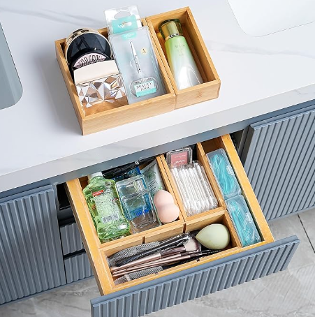Say goodbye to messy drawers! The Fabsome Bamboo Drawer Organizer is here to rescue your kitchen, bathroom, or office from chaos. With nine individual bamboo bins in different sizes, you can mix and match them to fit your space perfectly. No more digging through junk drawers—everything finally has a place! Plus, they’re made of 100% real bamboo, so they’re not only durable but also look way better than plastic. Whether it’s makeup, utensils, office supplies, or those random things you never know where to put, these organizers have you covered. Time to tidy up in style!