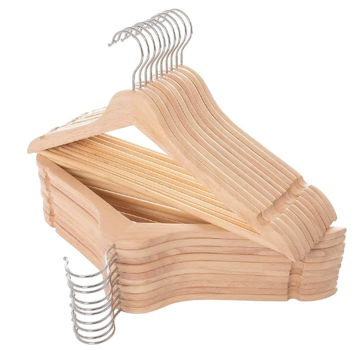 Upgrade your closet with these sleek and sturdy wooden hangers! Made from premium natural wood with a smooth, snag-free finish, they keep your clothes in top shape while adding a touch of elegance to your wardrobe. The 360-degree swivel hooks make grabbing outfits a breeze, and the built-in notches keep strappy clothes from slipping. Plus, their ultra-thin design saves space while still being strong enough to hold heavy coats and jackets. With a set of 20, your closet is about to get a serious upgrade—no more clutter, just effortless organization!