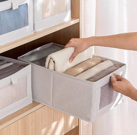 Upgrade your storage game with these linen closet organizers! This 4-pack of foldable storage boxes features a clear see-through window, so you can find what you need in seconds—no more digging through piles of stuff! Made from lightweight yet durable natural fiber fabric, these bins keep your space tidy, breathable, and stylish. Use them for clothes, towels, blankets, toys, and more—perfect for closets, shelves, or any room in your home. Plus, when not in use, they fold flat to save space. Functional, elegant, and oh-so-convenient!