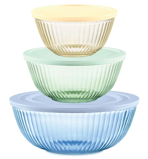 Upgrade your kitchen with this 3-pack Pyrex glass bowl set—your go-to for prepping, baking, and food storage! Featuring 1.3-qt, 2.3-qt, and 4.5-qt bowls, this set is perfect for everything from mixing ingredients to storing leftovers. The BPA-free lids snap on securely to keep food fresh, and the high-quality tempered glass resists stains and odors—no more lingering smells! Plus, they’re freezer, microwave, and dishwasher safe, making cleanup a breeze. Made in the USA, Pyrex has been a kitchen favorite for generations—practical, durable, and always reliable!