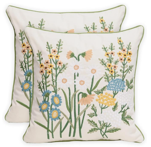 Add a touch of cozy charm to your space with these beautiful embroidered cotton pillow covers! Made from 100% durable cotton canvas, these 18” x 18” cushion covers bring a warm and stylish accent to your sofa, bed, or reading nook. The delicate embroidery adds a lovely textured detail, making them perfect for a cottagecore, boho, or farmhouse-inspired home. Plus, they’re easy to care for—just machine wash in cold water and hang to dry! Whether you’re refreshing your decor or looking for a thoughtful gift for a loved one, these pillow covers are a simple yet elegant choice. (Pillow inserts not included.)
