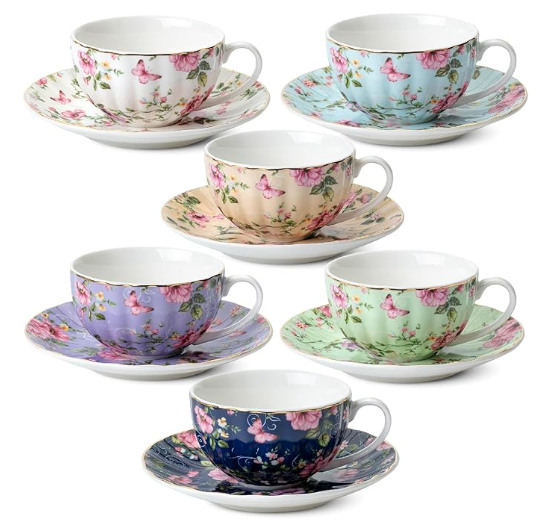 Step into a storybook tea time with this exquisite set of 6 floral tea cups and saucers! Crafted from high-quality porcelain, each cup holds 7 oz of your favorite tea, bringing both luxury and charm to every sip. With delicate floral patterns and vibrant colors, these cups feel like a vintage treasure, perfect for afternoon tea, cozy mornings, or a touch of elegance in your kitchen. Plus, they’re dishwasher safe, so you can enjoy the beauty without the fuss! Whether you’re treating yourself or looking for the perfect whimsical gift, this set is a cottagecore dream come true!