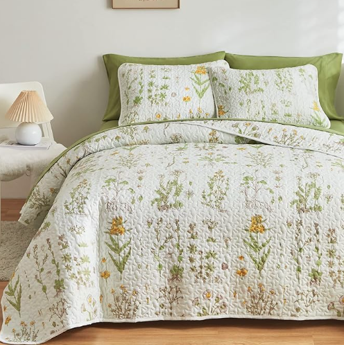Wrap yourself in cozy cottagecore comfort with this ultra-soft floral quilt set! Featuring a beautiful yellow flower and green leaf print on a soft green background, this lightweight yet warm quilt adds a touch of elegance and charm to any bedroom. Made from high-density microfiber with an 800-thread count, it’s buttery soft, breathable, and super durable—perfect for families, pet owners, and anyone who loves a long-lasting, easy-care bedding set. Plus, it’s reversible, giving you two dreamy looks in one! Whether you’re curling up on a chilly night or adding a fresh floral touch to your space, this cottage-inspired quilt is a must-have for all seasons.