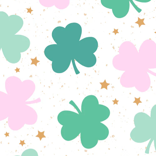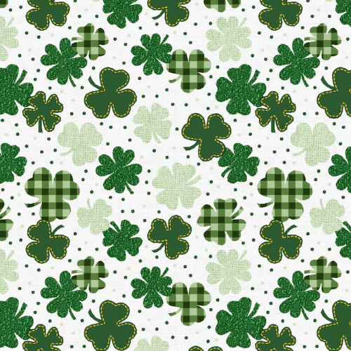 This fabric brings a soft, pastel twist to St. Patrick’s Day with delicate pink and mint green clovers scattered across a speckled background. Little gold stars add a touch of sparkle, making this design feel both charming and magical. It’s perfect for creating lighthearted, festive projects like accessories, home decor, or anything that could use a touch of pastel luck!