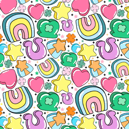 This cotton spandex knit fabric is bursting with bright, playful colors and whimsical shapes! Featuring rainbows, stars, clovers, hearts, and even a touch of sparkle, it’s perfect for adding a fun and cheerful vibe to your DIY projects. The soft stretch of the fabric makes it a great choice for comfortable, cozy creations like leggings, shirts, or cute accessories that’ll spread joy and positivity everywhere you go!