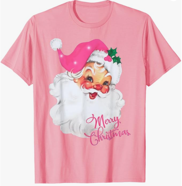 This pink Christmas t-shirt is a festive and fun way to celebrate the season! Featuring a vintage-inspired Santa in a cheerful pink hat and the words “Merry Christmas,” it’s perfect for spreading holiday joy with a playful twist. The soft pink color adds a trendy, whimsical touch to your holiday wardrobe, making it great for holiday parties, cozy nights in, or casual outings. A must-have for anyone looking to add a little retro Christmas charm to their look!