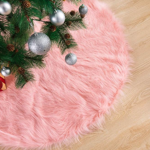 This fluffy pink tree skirt is a fun and stylish way to add a cozy touch to your holiday decor! Made from soft, plush faux fur, it creates a warm and luxurious base for your Christmas tree while adding a trendy pop of pink to your setup. Perfect for complementing pastel and glam holiday themes, this tree skirt makes your presents look even more inviting and gives your tree an extra dose of festive charm.