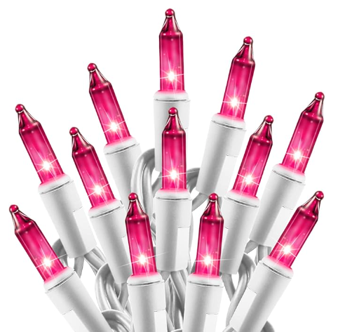 These pink Christmas lights add a vibrant pop of color to your holiday decor, bringing a warm and fun glow to any setting! With their bold pink bulbs and white wire, they’re perfect for creating a unique, playful look on your tree, wreaths, or garlands. Great for both indoor and outdoor use, these lights are an easy way to add some festive flair and make your decor stand out this holiday season. Whether you’re going for a fully pink theme or just a touch of color, these lights are a must-have!