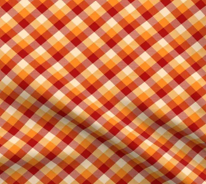This fabric showcases a classic plaid pattern in vibrant autumn colors, featuring shades of red, orange, yellow, and cream. The crisscrossed design creates a cozy, woven look, reminiscent of fall gatherings and harvest season warmth. Perfect for adding a seasonal touch to any project, this plaid fabric would work beautifully for table linens, throw pillows, or even festive apparel. Its timeless design and rich colors make it a versatile choice for anyone looking to capture the spirit of fall in their decor or crafts.